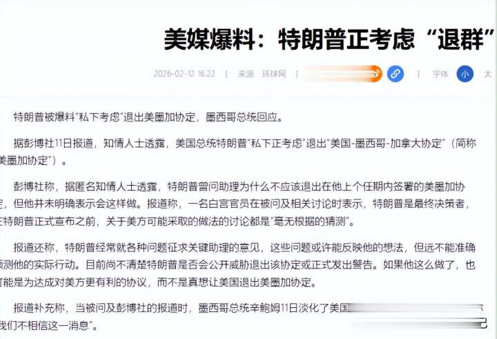 不过截至目前,他仅处于“私下考虑”阶段,尚未明确表态退出,其真实意图并非放弃协定,而是以“退出”为筹码,逼迫墨加双方修改农产品进口配额、木材关税等他认为“对美不公”的条款,本质是为美国争取更多经济利益。