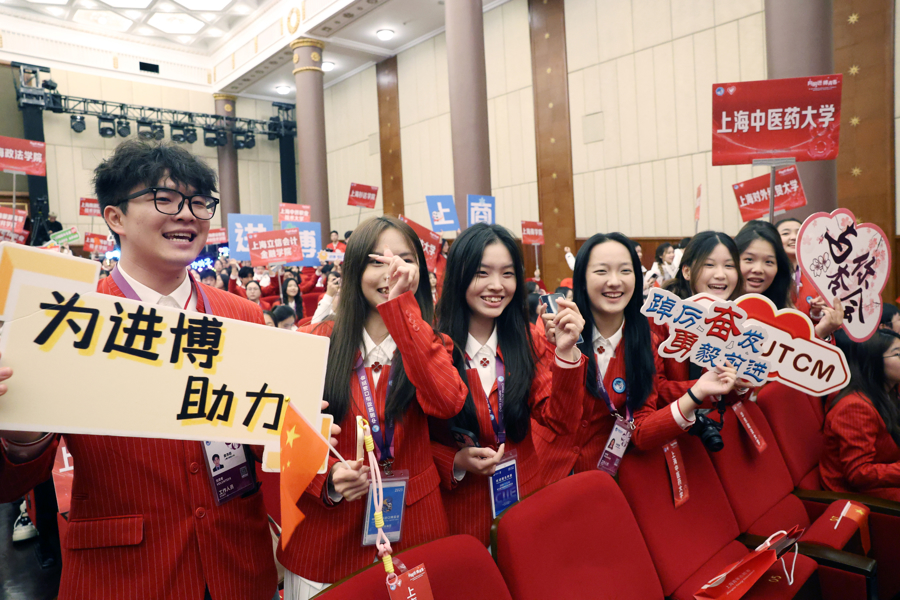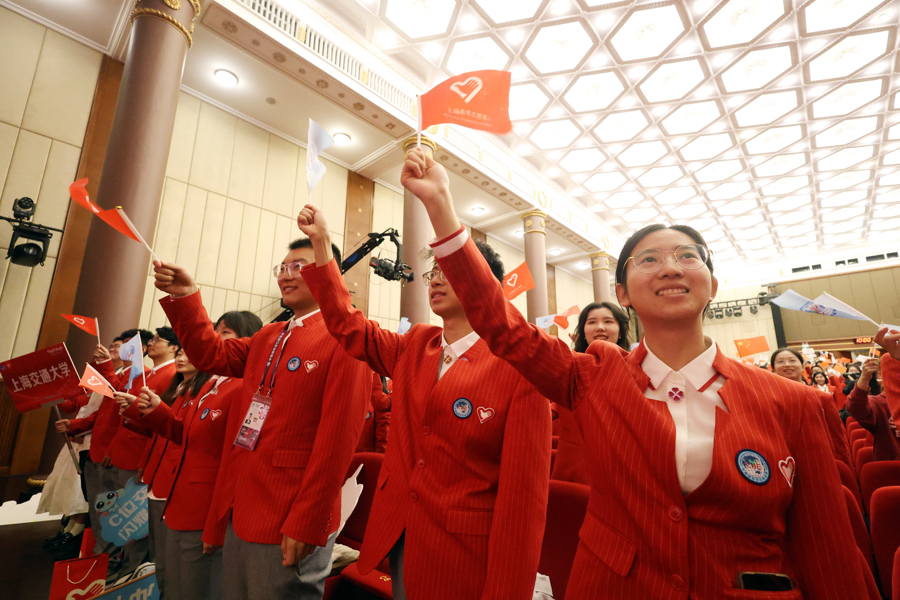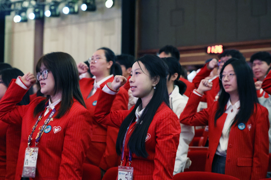 2025年10月29日,第八届中国国际进口博览会志愿者上岗宣誓仪式暨志愿者临时党、团组织成立仪式在上海展览中心友谊会堂举行,3865名进博“小叶子”在嘹亮的青春誓言中宣誓上岗。
