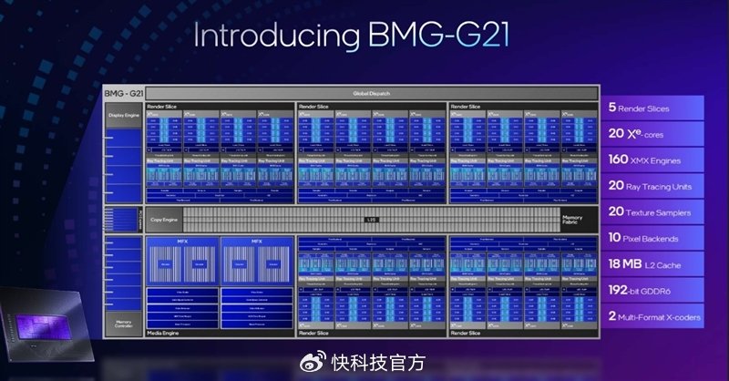 每颗BMG-G21 GPU可提供12.28 TFLOPS的FP32浮点性能以及197 TOPS的INT8 AI性能。